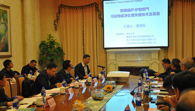 会上,浙江大学吴忠标教授代表申请单位汇报了技术研发及应用情况。鉴定委员会经质询和讨论,认为该成果针对燃煤工业锅炉/炉窑烟气多污染物控制,在高抗性、宽温区、环境友好的脱硫脱硝催化材料,数据化智能调控的液滴分布/颗粒物脱除新技术、气-液-固多相界面传质增强新技术等方面具有显著创新性。开发的关键技术和成套装备应用范围广,为燃煤工业锅炉/炉窑烟气的超低排放提供了高效、实用、先进的工艺技术和成套装备,市场前景广阔。多项技术填补了国内外空白,整体技术达到国际领先水平。该成果已授权国家发明专利59项,发表中文论文40余篇,SCI论文103篇,总他引2472次,在嘉兴协鑫环保热电有限公司、新兴铸管股份有限公司和新疆广汇新能源等烟气净化系统的应用表明,处理后烟气NOx、SO2、颗粒物浓度达到超低排放要求,并且已在全国30个省、自治区、直辖市以及日本新日铁公司、韩国浦项公司等国外企业获得大规模的工业应用,取得了显著的环境、社会和经济效益。该成果顺利通过中国环保产业协会鉴定。