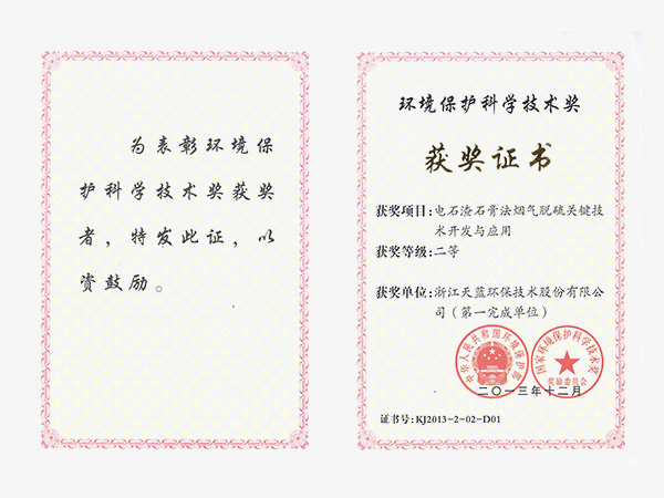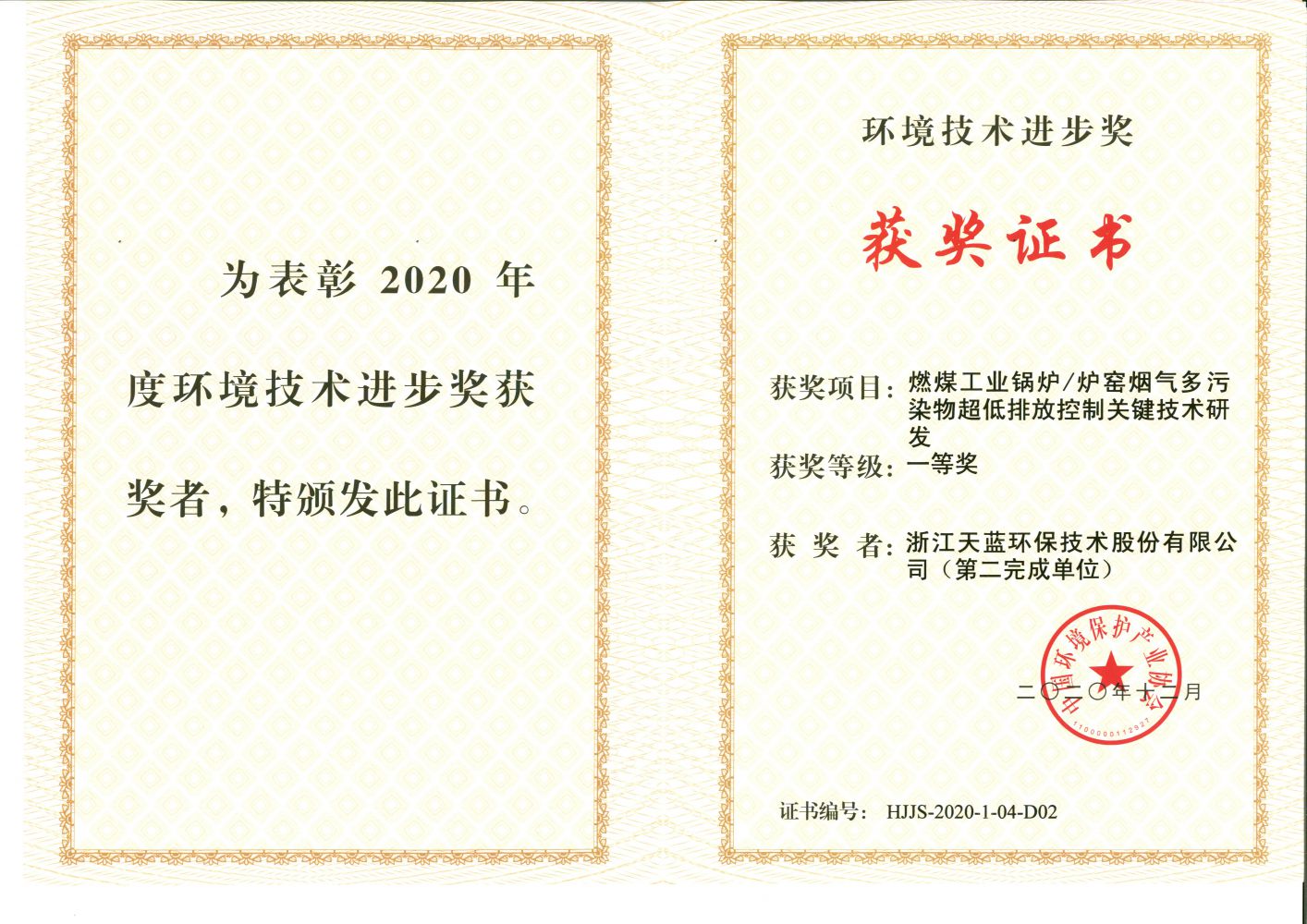 • 环境保护产业协会环境技术进步一等奖